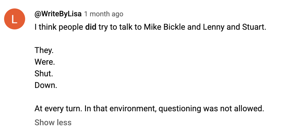 (I said it because I have a brain, and there are only so many options to consider. Lots of other people are thinking it, too. This doesn’t mean that we claim to know for sure that you were in “on it,” it’s just a possibility that any thinking person might consider. I do question your integrity, and I have no problem saying so. Why do you seem to think that everyone owes you their respect and trust? Below is a comment from your Feb. 2025 apology blog post. -S.K.)